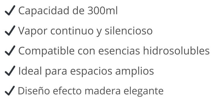 Con capacidad de 300ml, ofrece varias horas de vapor continuo y silencioso, ideal para dormitorios, livings o espacios de relax.