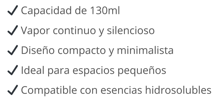 Con capacidad de 130ml, es ideal para uso personal o ambientes pequeños, ofreciendo un vapor suave y silencioso.